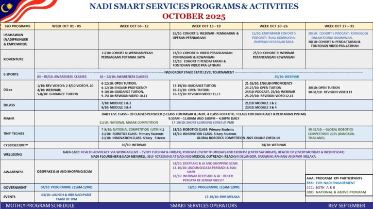 JADUAL AKTIVITI PERKHIDMATAN PINTAR OKTOBER 2025