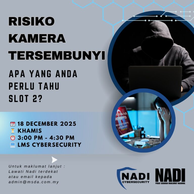 ANCAMAN KAMERA TERSEMBUNYI, APA YANG PERLU ANDA TAHU SLOT 2 📅 18 Disember 2025 (Khamis)🕒 3:00 PM – 4:30 PM💻 Platform: Zoom🔗 Pautan Pendaftaran: cybersecurity.nadi.my (untuk ahli NADI sahaja) 📌 Apa yang akan dipelajari?“Dalam slot kedua webinar ini, peserta akan […]