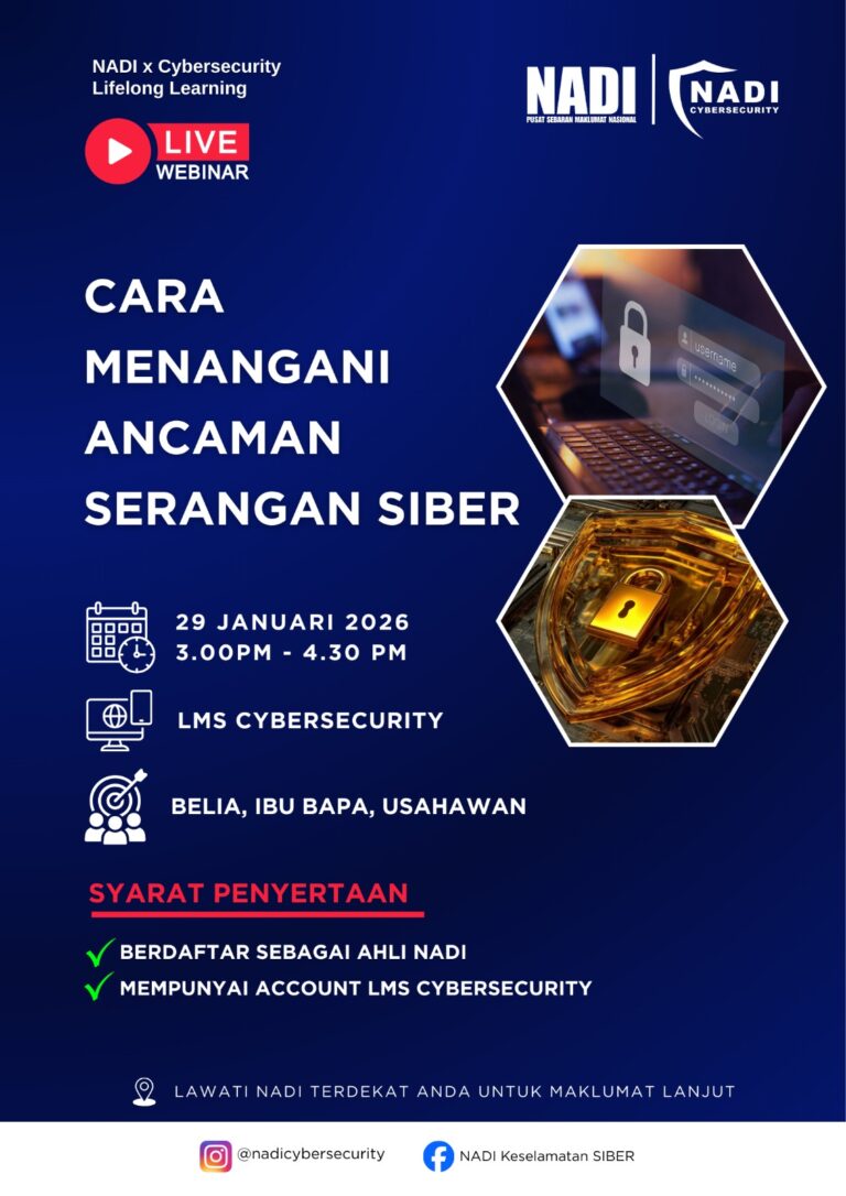 🚨 JEMPUTAN WEBINAR KESELAMATAN SIBER 🚨Adakah anda sedar bahawa serangan siber semakin meningkat dan boleh berlaku kepada sesiapa sahaja? ⚠️ 📌 Webinar: Cara Menangani Ancaman Serangan Siber🎯 Mengupas isu sebenar ancaman siber dan langkah pencegahan yang praktikal👨💻 Sesuai untuk semua […]