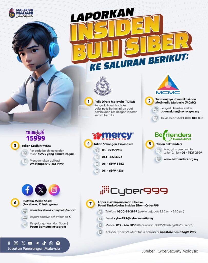 Jangan diam jika anda atau orang sekeliling menjadi mangsa buli siber!